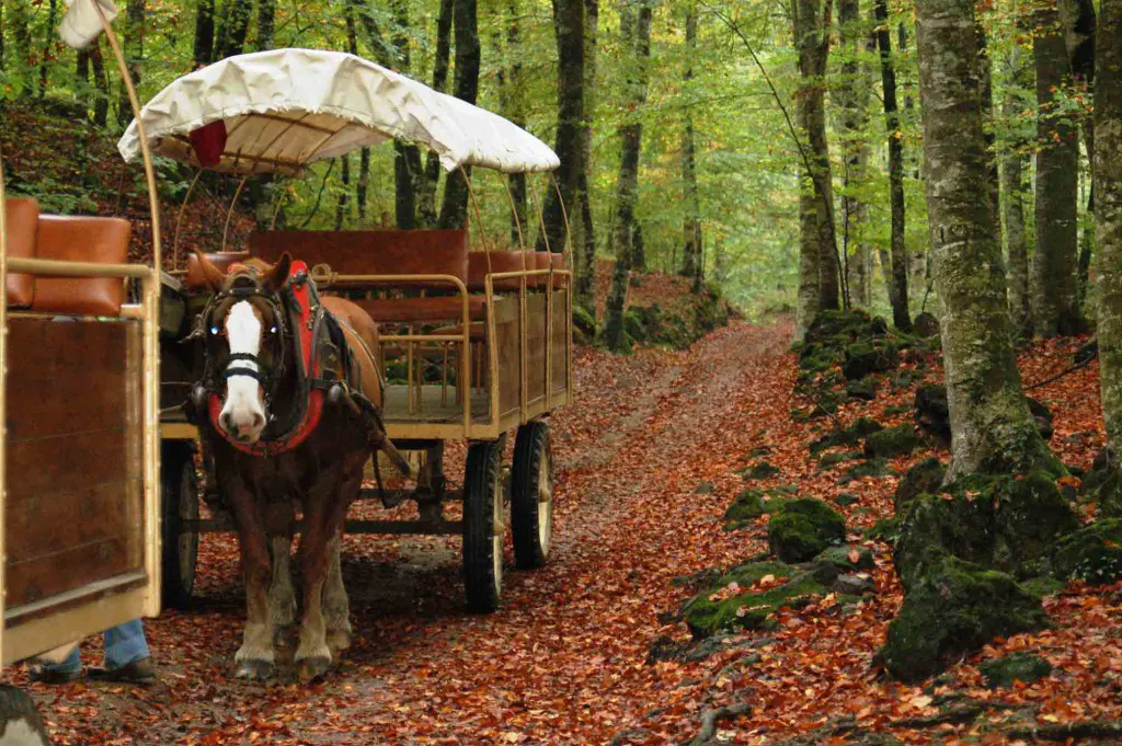 Si voleu gaudir en família d’una jornada diferent, us recomanem l’excursió en carruatges per la fageda d’en Jordà. Amb els carruatges tirats per cavalls, anireu recorrent el seu interior coneixent la seva història i el seu entorn. Durada 1 hora. Més detalls en aquest enllaç.
